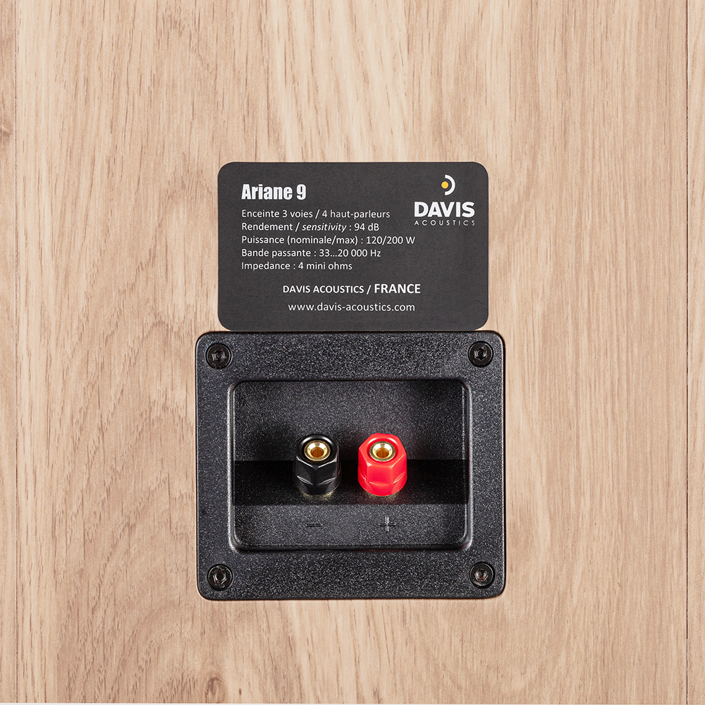 L’enceinte colonne ARIANE 9 est la plus grande colonne dans la gamme Ariane de DAVIS Acoustics. Créée pour les pièces d’écoute de 40 m2 et plus. Cette dernière mouture reprend les caractéristiques techniques de ses petites sœurs (ARIANE 5 et 7), en augmentant sensiblement la descente dans le grave. La scène sonore devient encore plus large et encore plus réaliste. L’impédance la plus faible de l’enceinte est néanmoins toujours supérieure à 4 ohms, pour éviter de faire trop chauffer l’amplificateur.